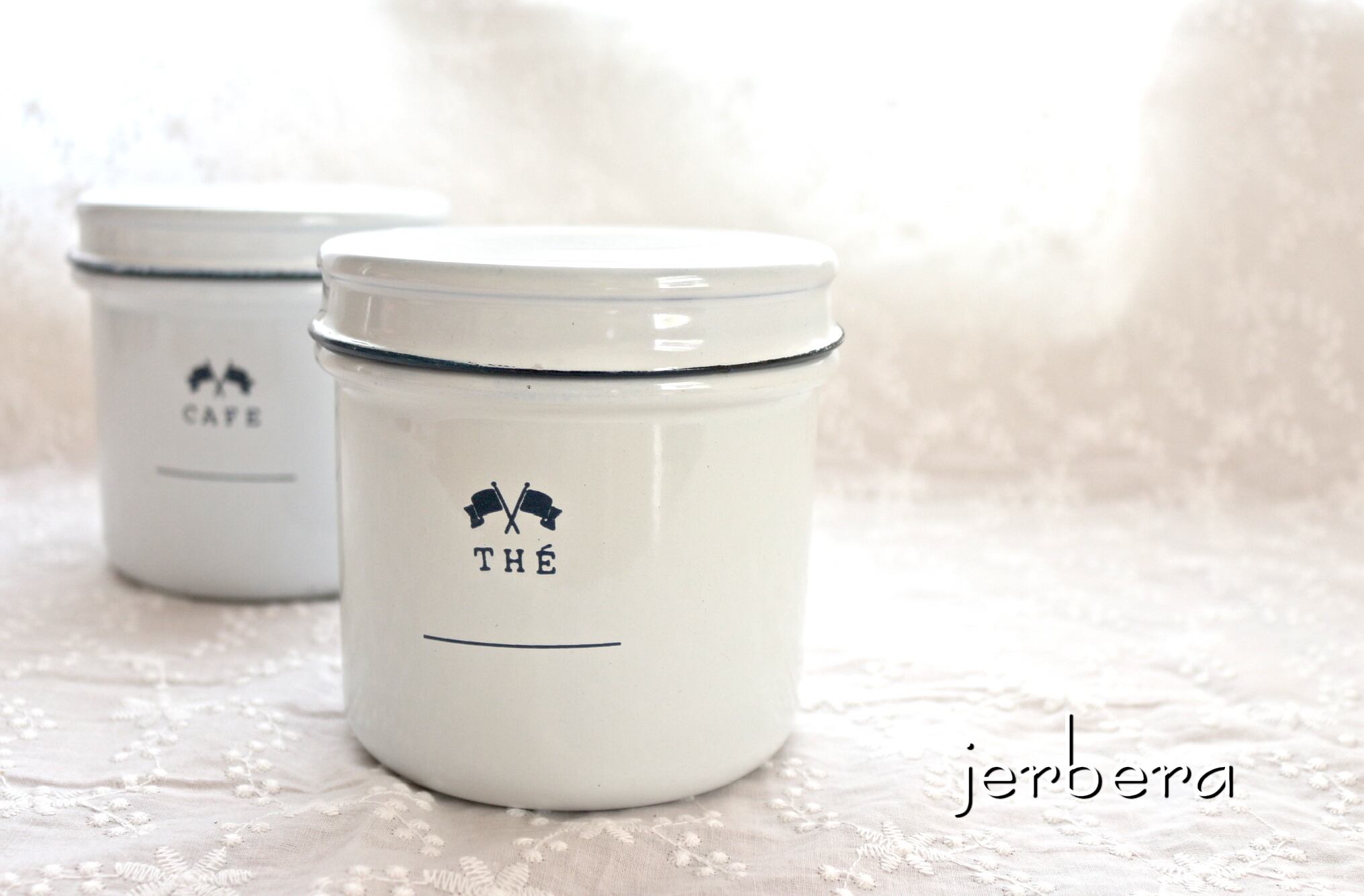 ◇使用感のあるアンティークな風合いが魅力のキャニスターです。ネイビーブルーのシンプルなロゴは爽やかで清潔感を与えてくれます。
